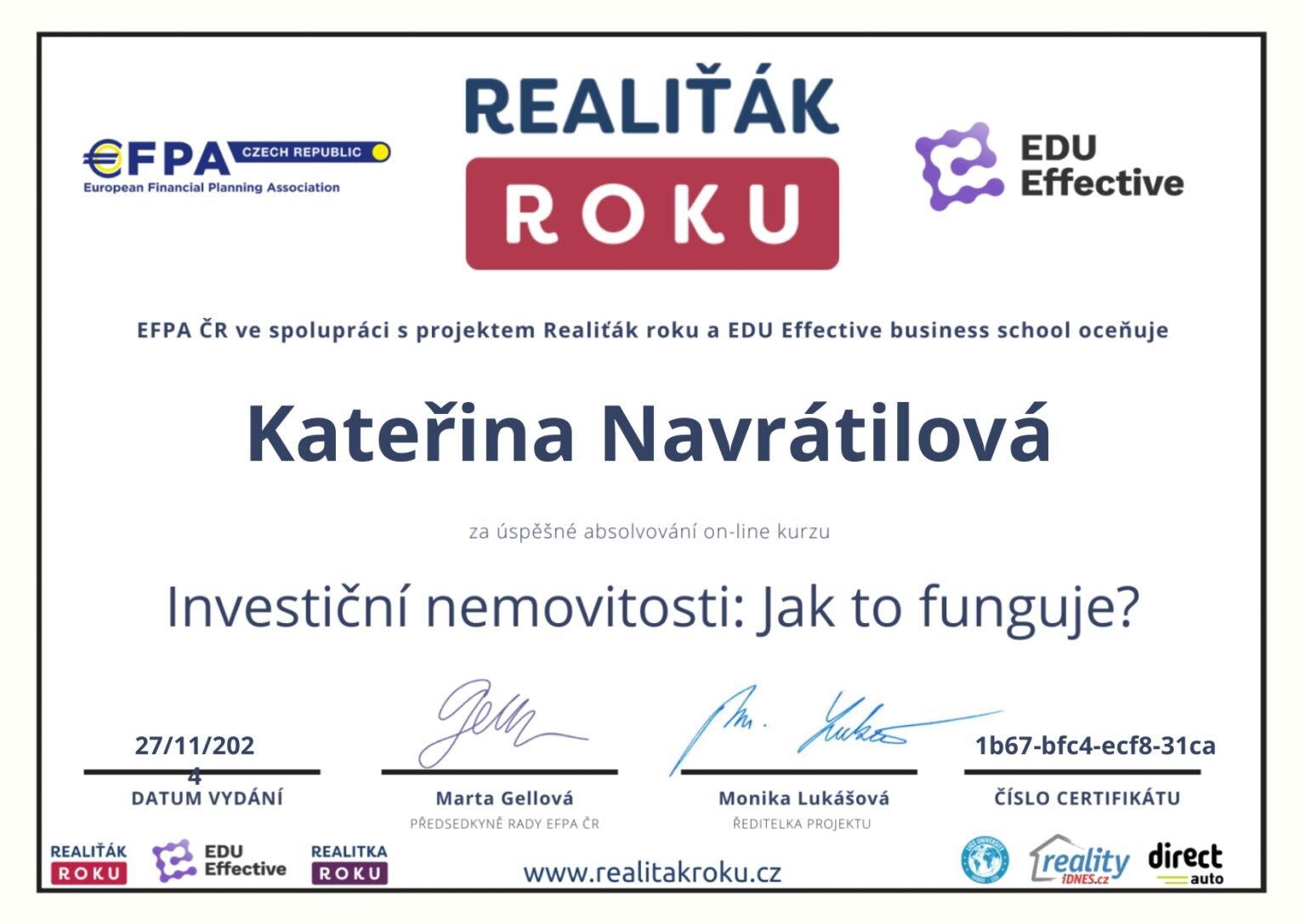 Své působení v oboru realitního obchodu jsem načala v roce 2009. Mé kroky vedly do RK Stejskal, která byla v Č. Budějovicích jednou z nejznámějších realitních kanceláří. Zpočátku jsem nabírala zkušenosti a věnovala se prodeji a pronájmům všech druhů nemovitostí. Postupem času jsem začala spolupracovat se sítí investorů a jako vedoucí jsem vedla prodejní týmy při kompletní realizaci jejich developerských projektů. Dále mi byla nabídnuta funkce ředitelky a jednatelky realitní kanceláře, kterou jsem úspěšně provedla obdobím pandemie Covidu i krizí v energetice, a kterou jsem zastávala až do konce roku 2023. Po zralé úvaze jsem poté nastoupila do nově vzniklé a dynamicky se rozvíjející RK Realvize, kde podle mého soudu budu nejlépe moci zúročit své dlouhodobé zkušenosti v oblasti prodeje nemovitostí a vedení týmu realitních zprostředkovatelů.