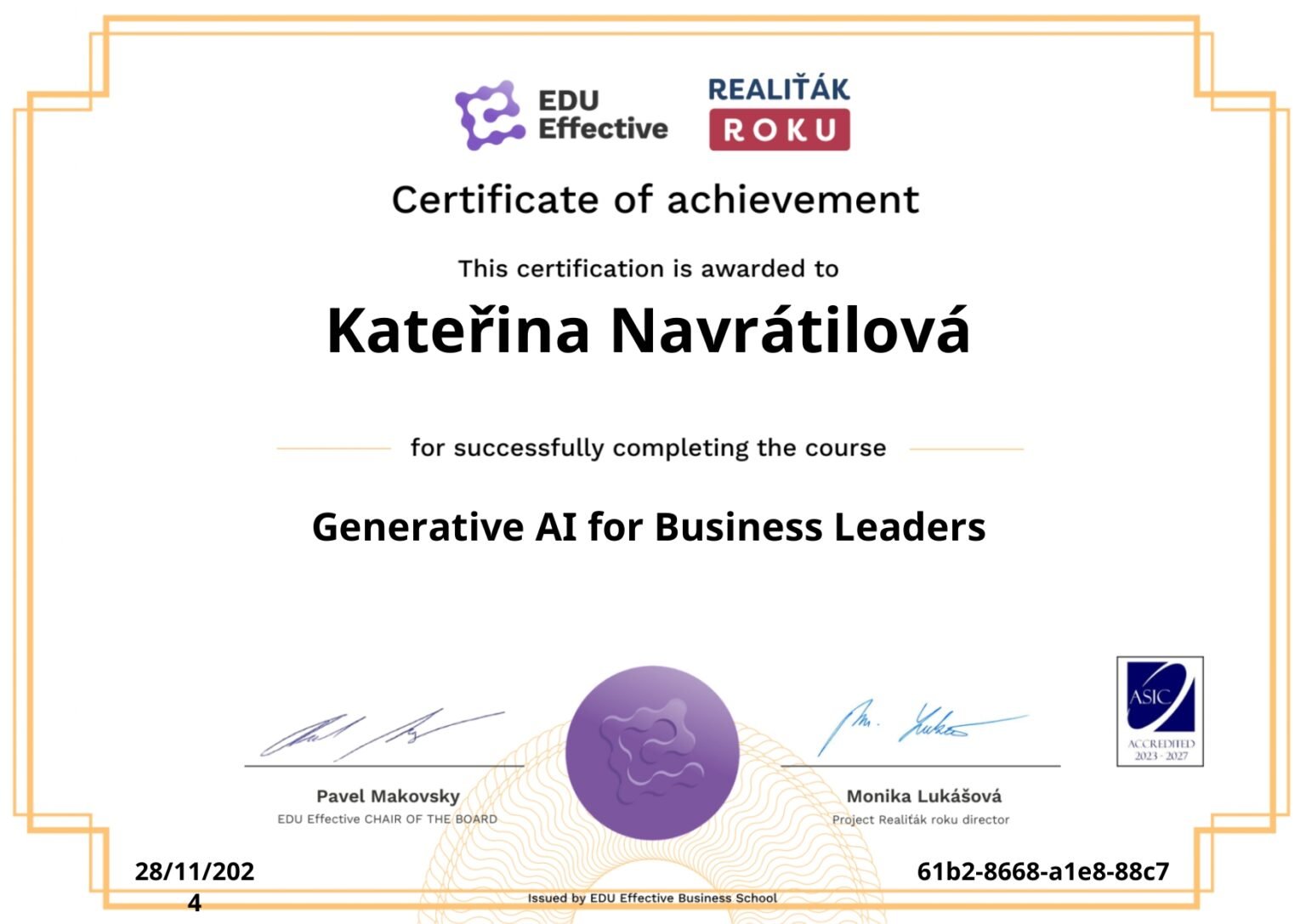 používám jí hlavně k automatizaci administrativy, analýzy trhu, tvorbě a optimalizaci inzerátů, komunikaci s klienty, plánování schůzek a dalších úloh, vytváření dokumentů a poskytování aktuálních informací o trhu s nemovitostmi. Pomocí AI tak zvyšuji efektivitu a zlepšuji kvalitu služeb pro klienty.